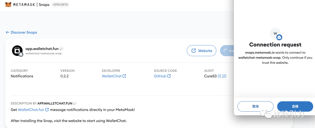 返回 MetaMask Snap 没有卸载按钮,然后就去 walletchat 设置里怒关了通知。
