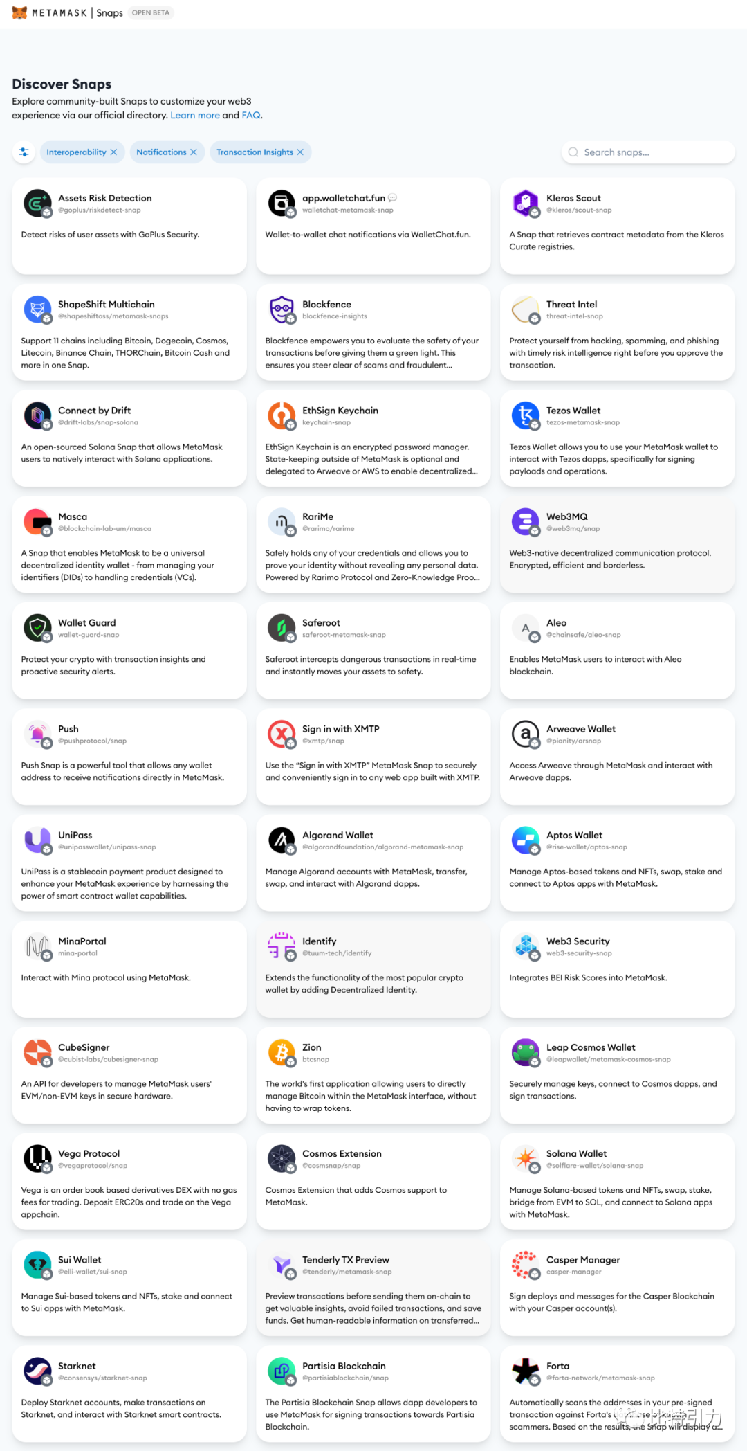 MetaMask Snaps,Web3 钱包版的微信小程序,其实公测版出来了一段时间了。